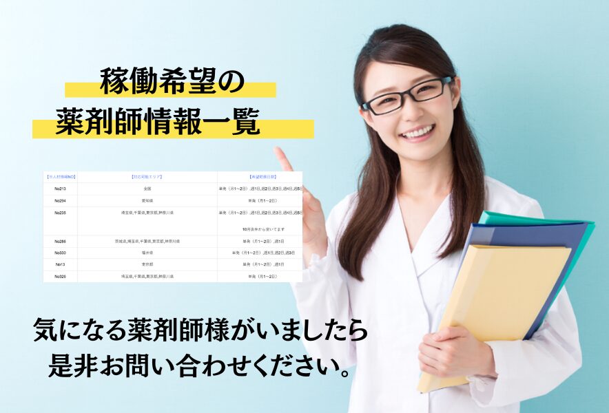 即日~来年の4月~など稼働可能な薬剤師様をまとめました。