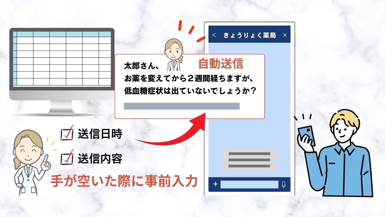 LINEは非同期コミュニケーションのため、薬剤師側も患者側も都合の良いタイミングでやり取りが可能です。これにより、従来の電話対応よりも柔軟な対応が可能となります。