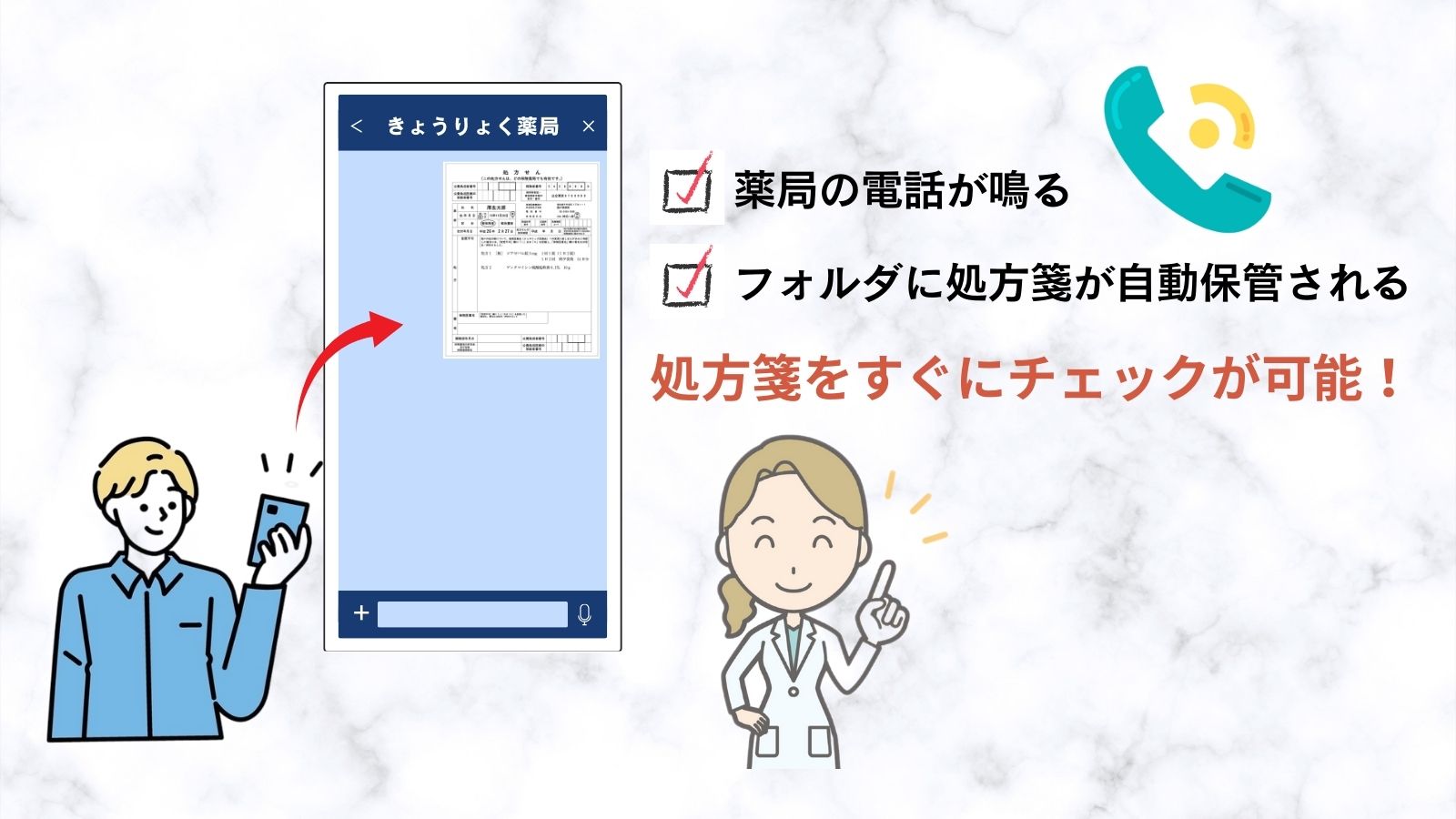 ・処方箋が届くと電話通知